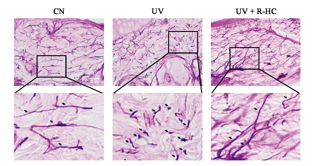 关键词: 重组人源胶原蛋白, 光老化, 皱纹, 胶原纤维, 弹性纤维