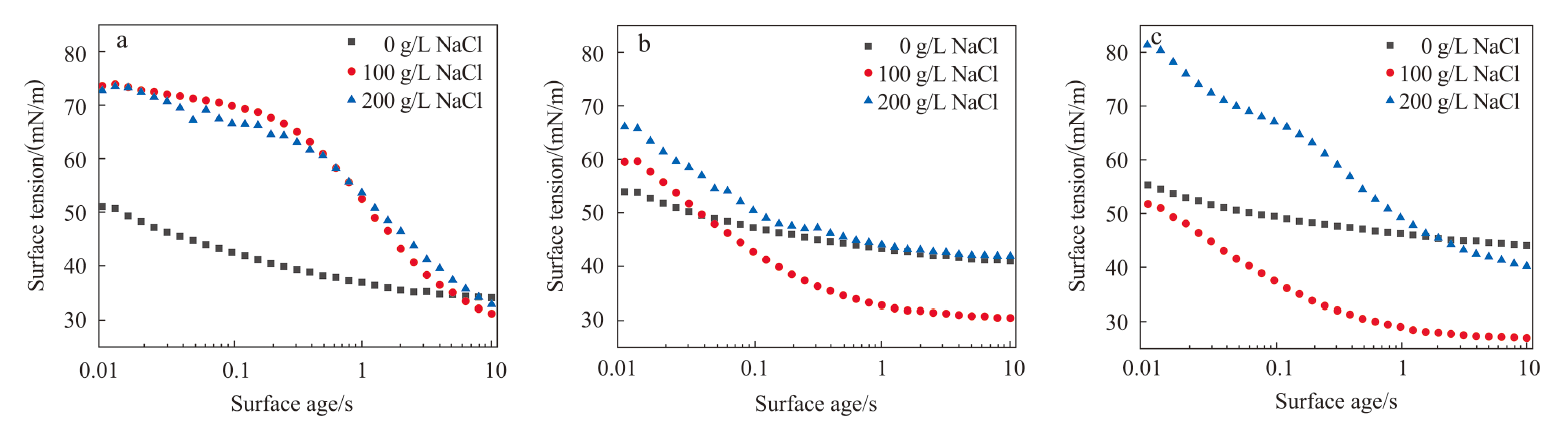 Gas wells often encounter blockages in gas recovery channels owing to fluid accumulation during the later stages of extraction, which adversely affects subsequent recovery efforts. These undesirable conditions (e.g., high condensate content, high temperature, and high salinity)often affect foaming agent performance. In this study, surfactants were screened using an airflow method that closely resembles field treatment method. Notably, alcohol ether sulfates(AEnS)with various polyoxyethylene(EO)units demonstrated exceptional performance in terms of liquid unloading efficiency and foam stability. At 80 ℃, the unloading efficiency of AEnS with two EO units (AE2S) in a high NaCl mass concentration (up to 200 g/L) and high condensate volume fraction (up to 20%) reached 84%. The dynamic surface tension and interfacial tension measured at the same temperature were used to analyze the influence of the diffusion rate and interfacial characteristics on the AEnS foam, while the viscosity and liquid film thickness measurements reflected the mechanical strength and liquid-carrying capacity. In addition, transmission electron microscopy(TEM)revealed that AE2S formed “dendritic” micellar aggregates at a high NaCl mass concentration, which significantly enhanced the viscosity and stability of the foam. The interactions among AEnS, NaCl, and H2O were analyzed using molecular dynamics, and it was confirmed from a molecular mechanics perspective that a stable structure can form among the three, contributing to the foam stability. These findings demonstrate the significant potential of the AE2S foam for gas well deliquification.