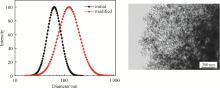 To meet the needs for nano-oil displacement agents in the development of high-temperature reservoirs, in this work, nano-SiO2 was modified with silane coupling agent dodecyltriethoxysilane. The temperature-resistant modified nano-SiO2 was optimized by using the reduction of interfacial tension as evaluation index. The modified nanomaterial was analyzed by infrared spectroscopy, and the microstructure and particle size thereof were characterized by transmission electron microscopy and dynamic light scattering, respectively. Then, a surfactant with good compatibility with modified nano-SiO2 was selected among several surfactants of different types by dispersion to construct a synergistic system. The interfacial tension and wetting ability of the constructed synergistic system were evaluated on an interfacial tensimeter and a contact angle meter. Finally, the microscopic oil displacement experiment was carried out by means of microscopic visualized displacement model. The results showed that when the reaction time was 40 h, the reaction temperature was 60 °C, and the amount of the modifier was 16%, the oil-water interfacial tension of the modified nano-SiO2 reached 6.081 7 mN/m, and the particle size of the modified nano-SiO2 was 122 nm. According to dispersibility, the surfactants HN and allyloxy polyethyleneglycol (APEG) with good compatibility with modified nano-SiO2 were selected. The test results of interfacial tension and wetting ability showed that the modified nano-SiO2/HN composite system had better performance. The modified nano-SiO2/HN system had good abilities to reduce the interfacial tension and change the water-phase contact angle under the conditions of reservoir temperature of 160 °C and salinity of 35 000 mg/L. The results of microscopic displacement experiments showed that the oil recovery of modified nano-SiO2/HN system was 21.1% higher than that of water flooding. This research could provide scientific support and theoretical basis for the application of this kind of synergistic system.
